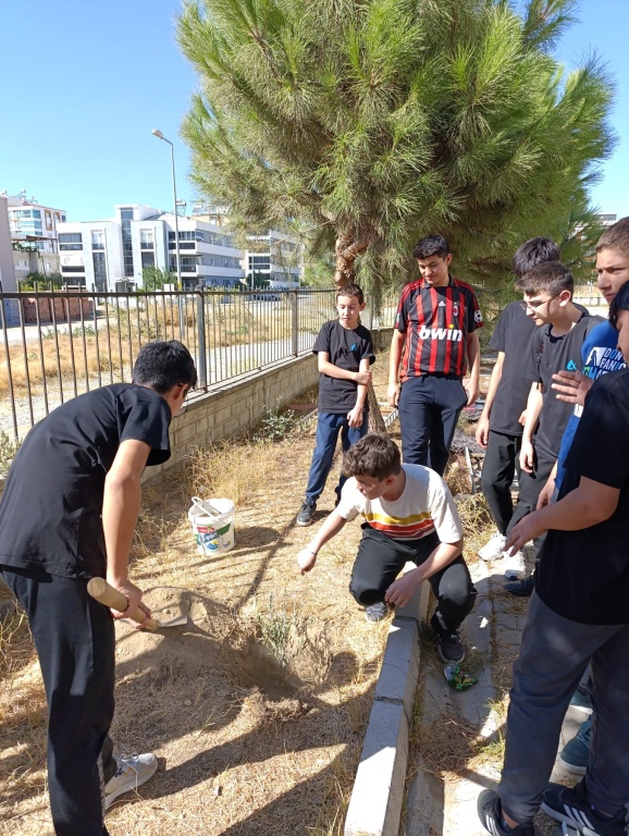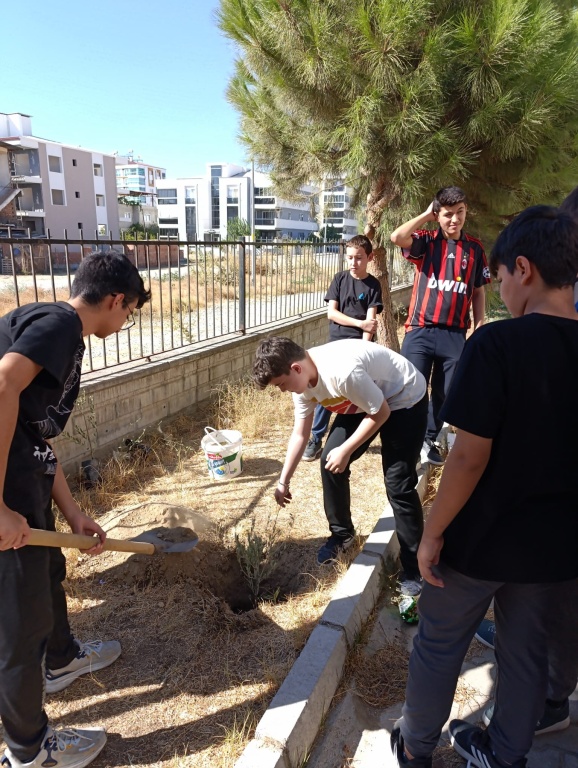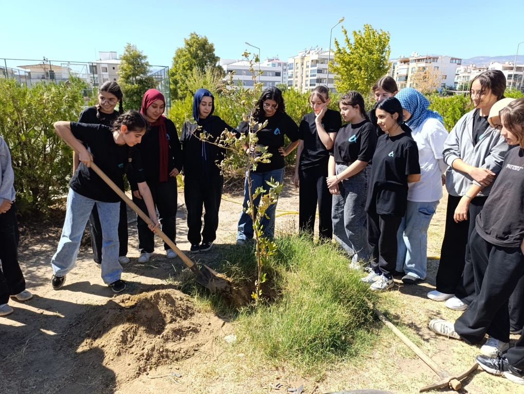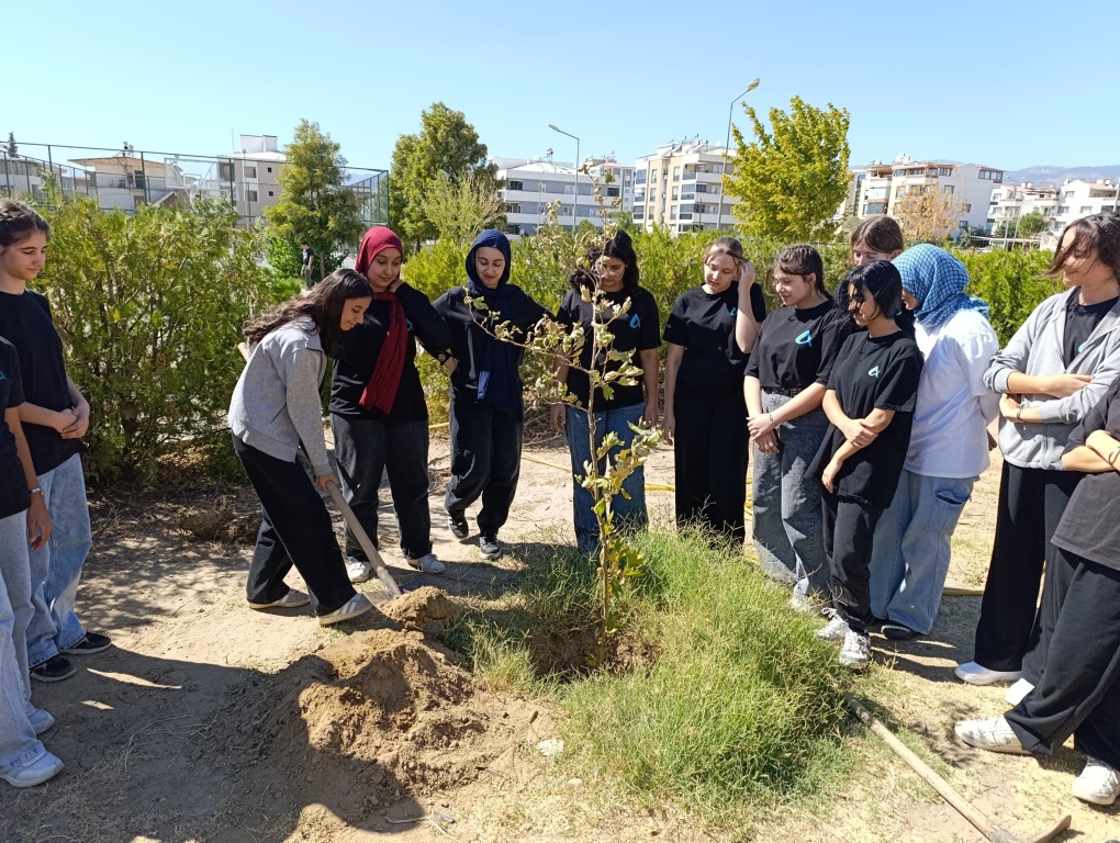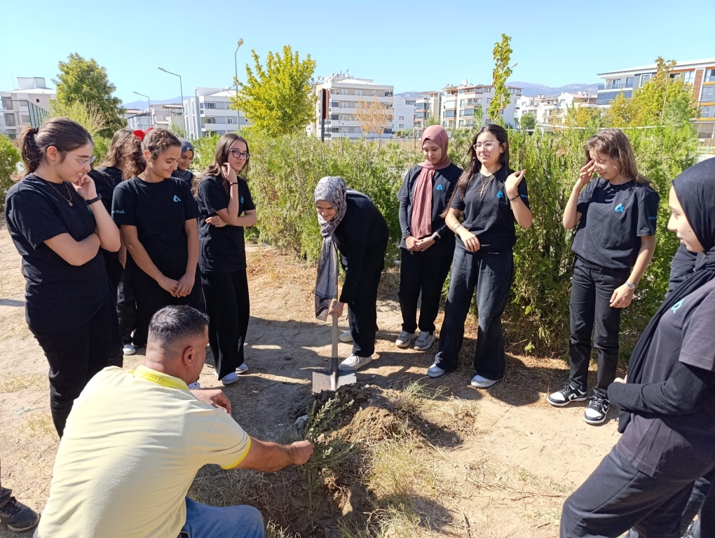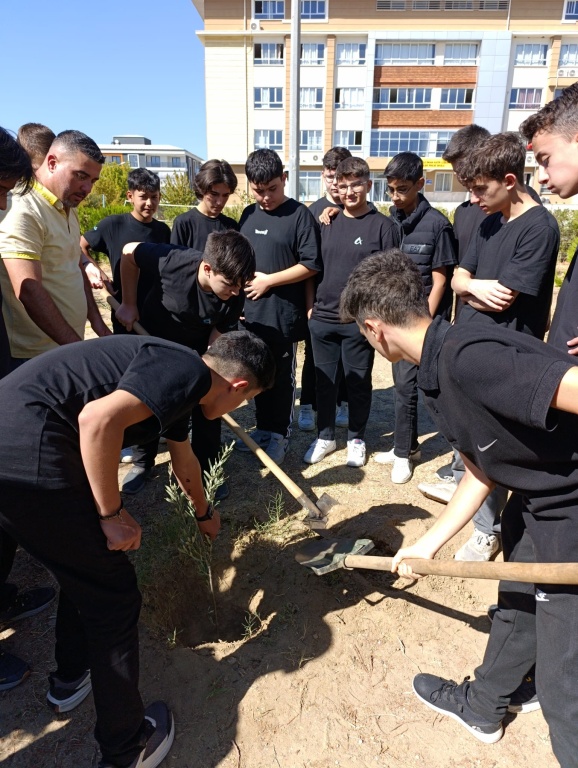 Okulumuzda, 9. sınıf öğrencilerine yönelik gerçekleştirilen oryantasyon eğitimi kapsamında çevre bilinci ve doğa sevgisini aşılamak amacıyla anlamlı bir etkinlik düzenlendi. Öğrencilerimiz, okul bahçesinde zeytin ve çınar fidanları dikerek doğaya katkı sağladı.